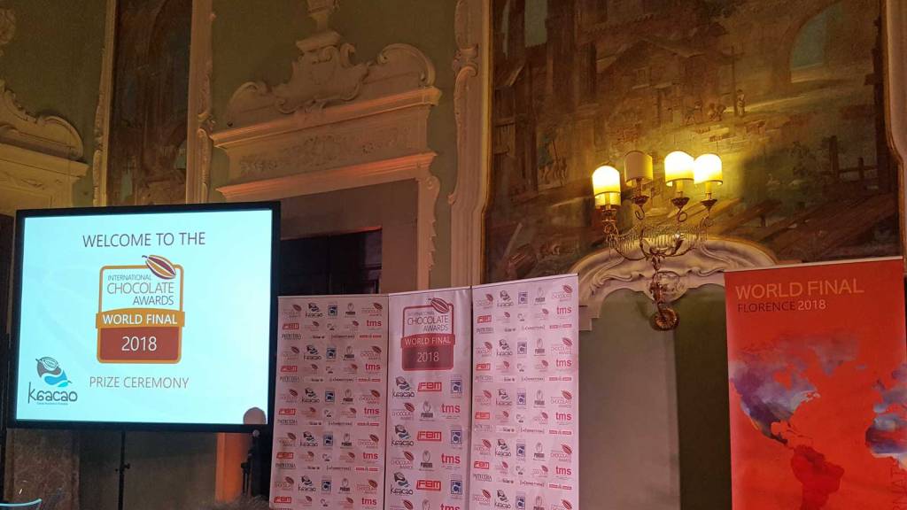 This year, on Saturday 17 November, the ceremony for the 7th edition of ICA World Final moved to Florence in Italy, with a gala dinner. Alas, it clashed with the Shrewsbury Chocolate Festival and we promised Julia the organiser that we would exhibit at this festival. Albert got the short straw and ended up working at the Shrewsbury show while I could attend this year’s ICA World Final ceremony.